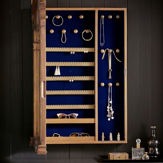 Use Mirror Of Erised to see what your heart desires! Made of iron, this mirror also serves as a jewellery cabinet to store and organize your trinkets and treasures. Featuring multiple shelves, earring holes and hooks, this piece is a magical accent to your wall decor!