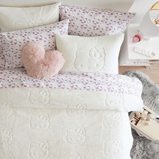 Have a perfect night's sleep with our supersweet and cozy Hello Kitty faux-fur quilt. Hello Kitty-inspired stitched details make this bedding an instant favourite.